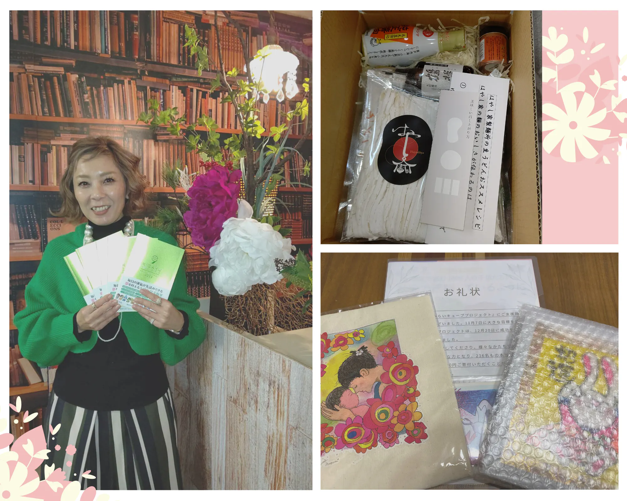 素敵なリターン商品の数々を封筒に入れながら、ご提供でも本当にたくさんの方々にご協力いただことに