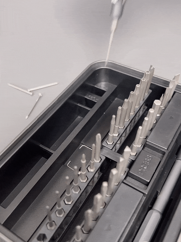 ドライバー先端の磁力が弱くなってきてしまった際は、下段ケース内の磁性付与スペースを使用することで、磁気を強化することができます。例えば、小さな精密ネジを使って作業する際にとても便利です!