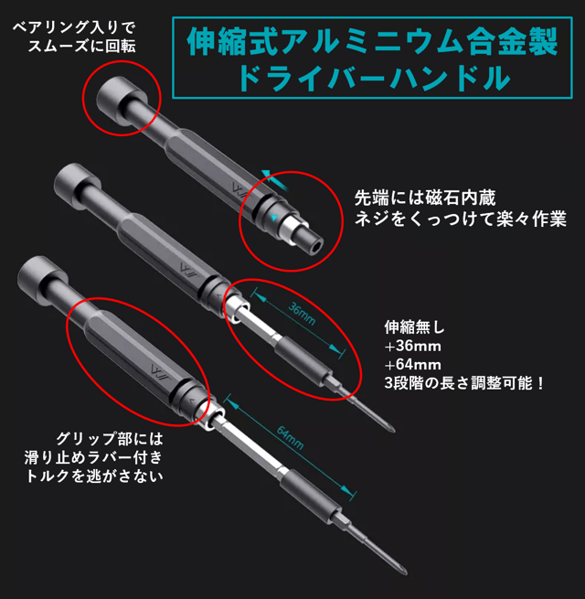 高品質アルミニウムを採用した伸縮式ドライバーハンドルを新規追加!