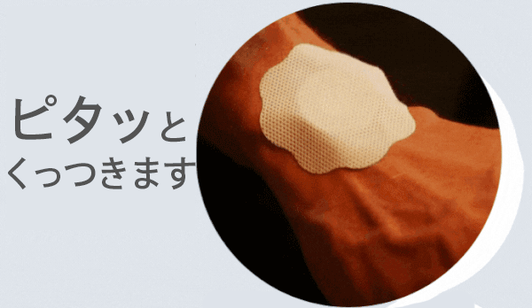 お灸のように、体勢を変えると落ちてしまう心配もありません。