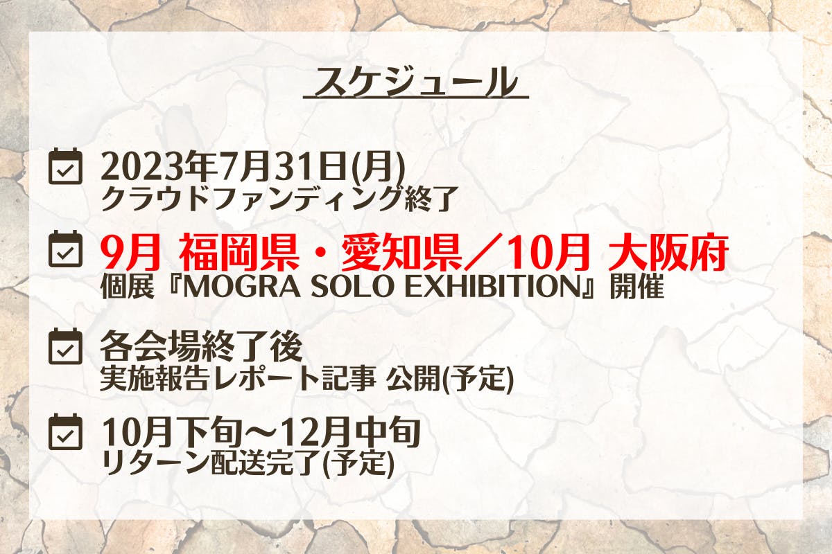 今回の「MOGRA solo EXHIBITION」の開催スケジュールと概要は以下の通りです。