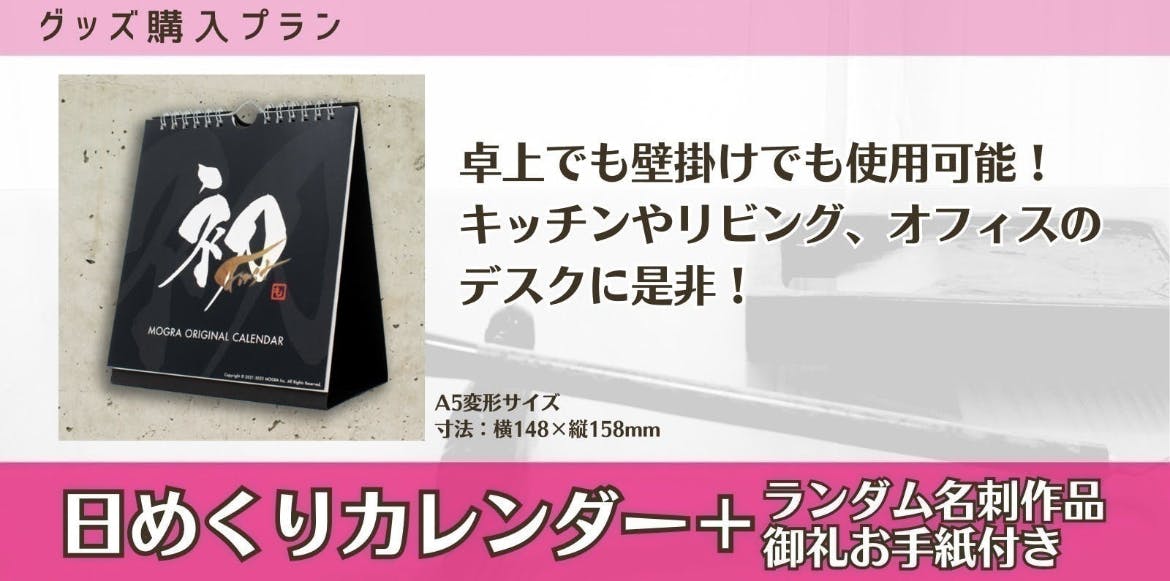 制作にあたり、このカレンダーをご購入してくださった方が、日々の生活の中で文字に触れたり、書を感じ取って頂けたらと思い、作ったものになります。
