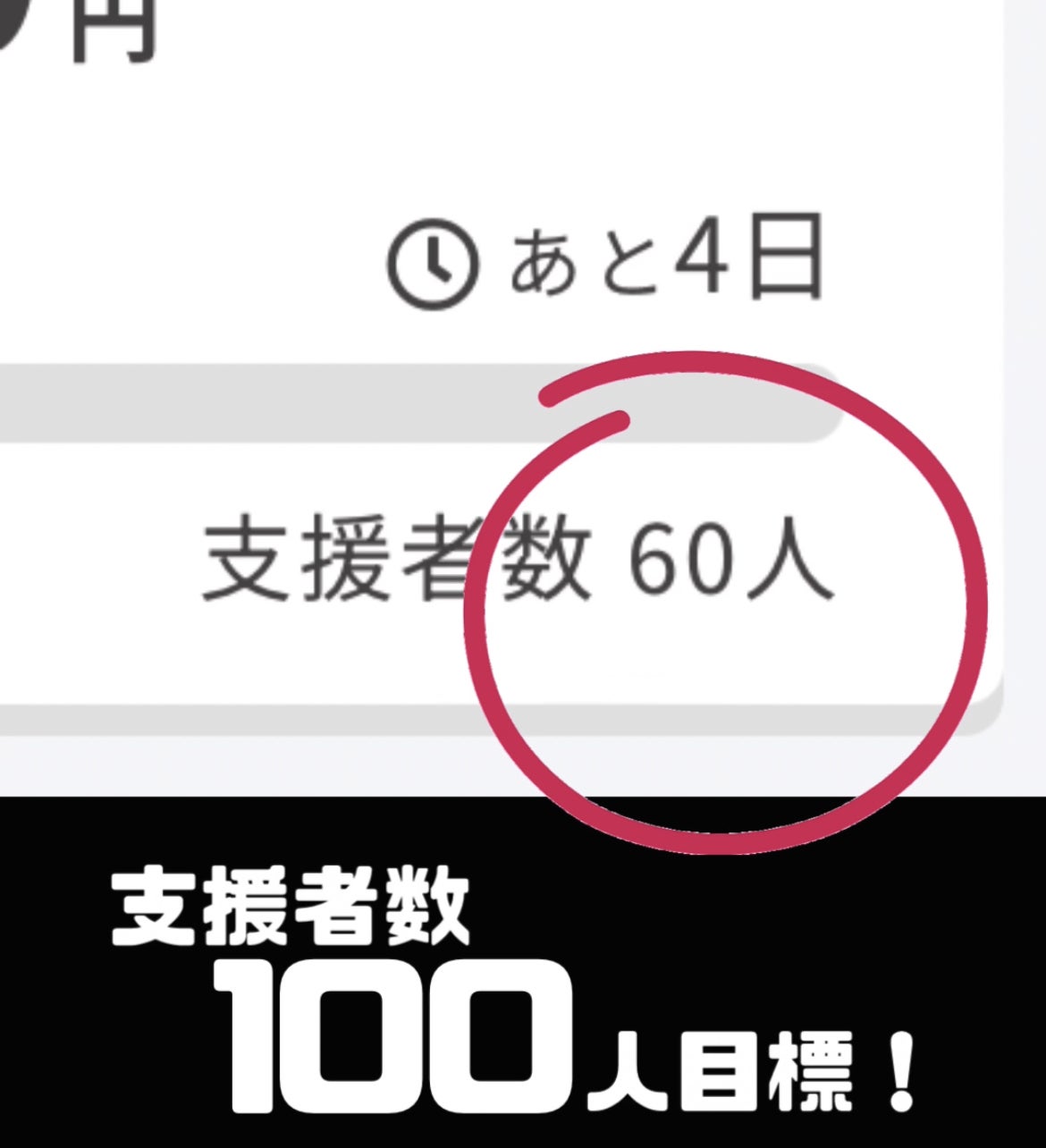 絶対に達成したい!!1人ひとりの応援が必要です!お願いします!!
