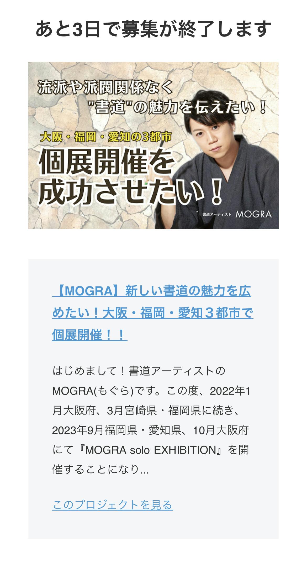 まだリターン悩んでる方もいるかと思いますが、是非分からないことや質問があれば、SNSのDMやメール(info@mogra20.com)へお気軽にご連絡ください。