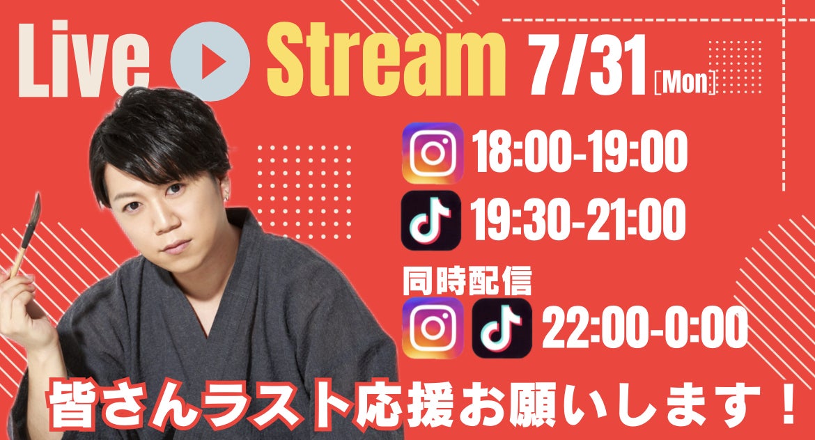 ※22:00からのライブ配信は、同時配信となります。Instagramに関しては、ラグが生じるためコメント読みが遅くなる場合もありますので、ご注意ください。TikTokに関しては、同時配信のため、コメントが流れる場合があります。予めご了承ください。