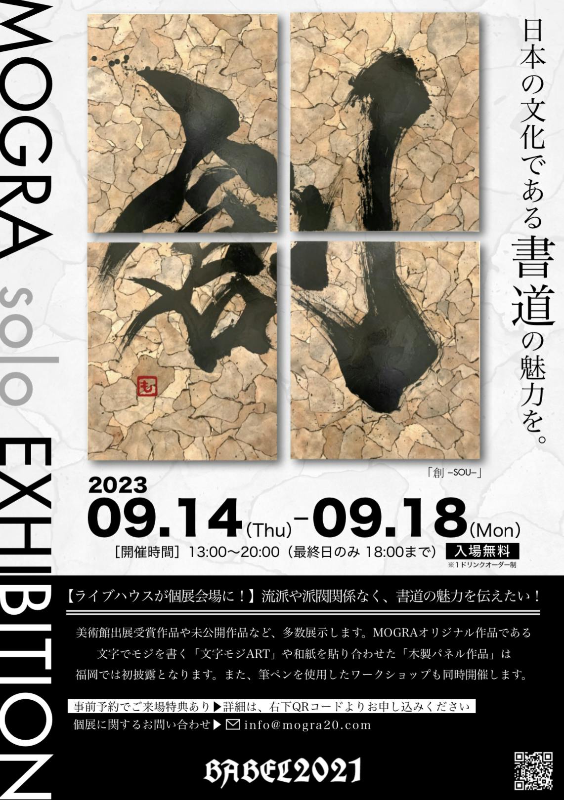 本日より「MOGRA solo EXHIBITION」がスタートします!昨日福岡の会場搬入しましたが、とても大変で夜中までかかってしまいました。でも、自分が納得のいくまで、細かいところまでやり、会場を作り上げることが出来ました。