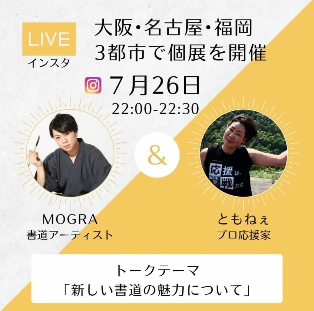 プロジェクトページをご覧頂き、ありがとうございます。本プロジェクトが残り3日となりました!!現在56%、ご支援者65人と本当に感謝申し上げます。目標は活動報告にアップしてます。まだリターン悩んでる方もいるかと思いますが、是非分からないことや質問があれば、SNSのDMやメール(info@mogra20.com)へお気軽にご連絡ください。そして、まだこのプロジェクトを知らない方もいるかと思います。皆さんSNSやお知り合いなど、是非宣伝して頂けると大変助かりますm(_ _)mまた、最終日7月31日ですが、インスタライブ、TikTokライブを行います。皆さんと一緒に最終日を迎えたいと思いますので、活動報告に告知させて頂きます。書道アーティスト MOGRA