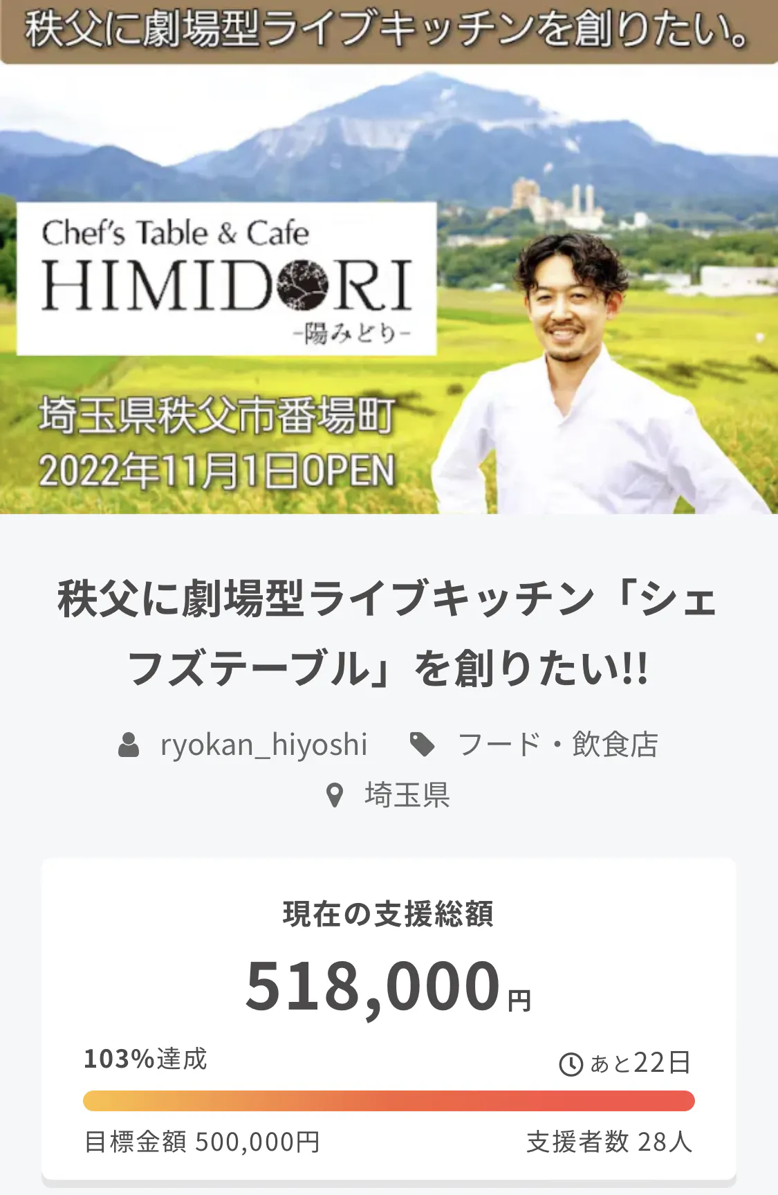 このプロジェクトは、2022/10/07に募集を開始し、 72人の支援により 970,505円の資金を集め、 2022/10/31に募集を終了しました