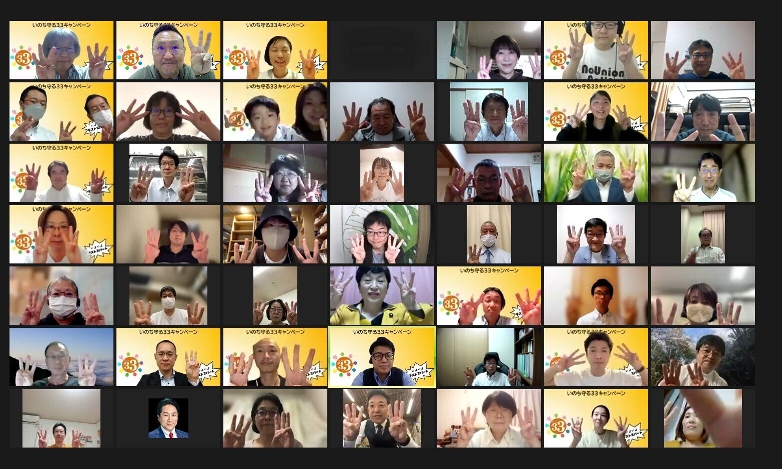 遠い北海道札幌からゲストを向かえて、33キャンペーンやクラファンについて語るフェイスブックライブを開催しました。(10月21日(金)19:30~20:00 )ゲストは先日のラストスパート集会にも参加してくれた”じゅらら”。Q:33キャンペーンについて思うことは?「もやもやしていたけど今まで声をあげられなった。声をあげてくれてありがとう。って感じ」Q:クラファンについては?●「私たちもその輪に加えてくれてありがとう。って感じ」「応援できる場を形にできたんじゃないかな」と語ってくれました♪ チームメンバーはこの言葉にますます勇気づけられました!フェイスブックライブは不定期開催ですが、近日中にも実施予定です!チームの日常と本音もでるでる(笑)の楽屋トークです。気軽にご覧ください。↓キャンペーンのフェイクブックページよりご覧ください。https://www.facebook.com/inochimamoru33/?ref=page_internal