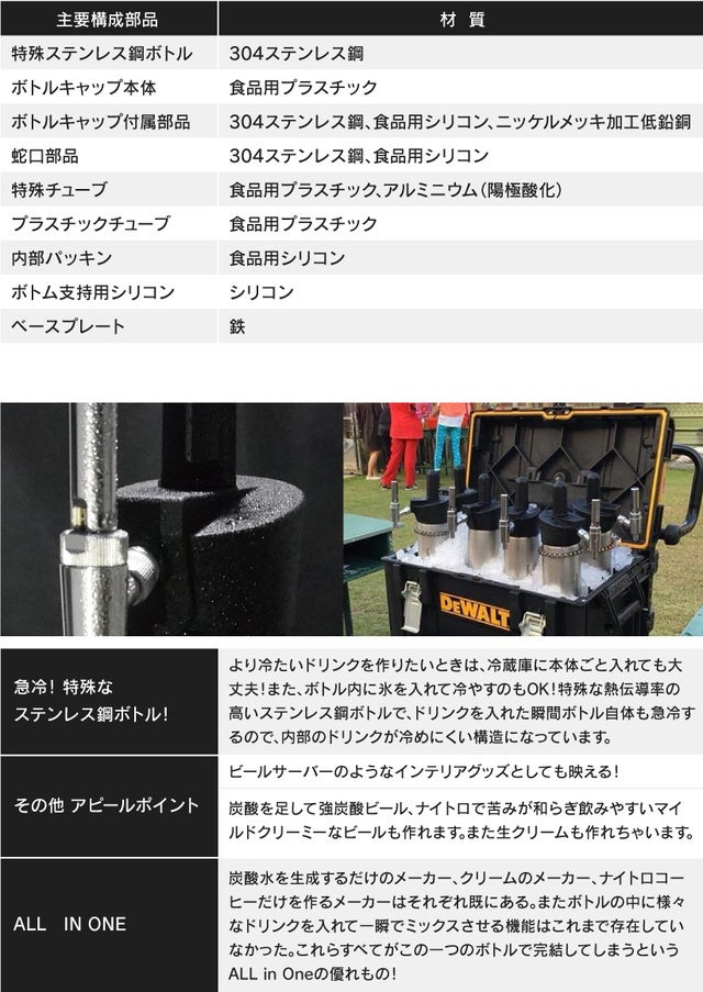 商品について詳細が知りたくなり、説明を聞いているとなんと炭酸だけではなく、窒素も注入することができるとのこと!!
