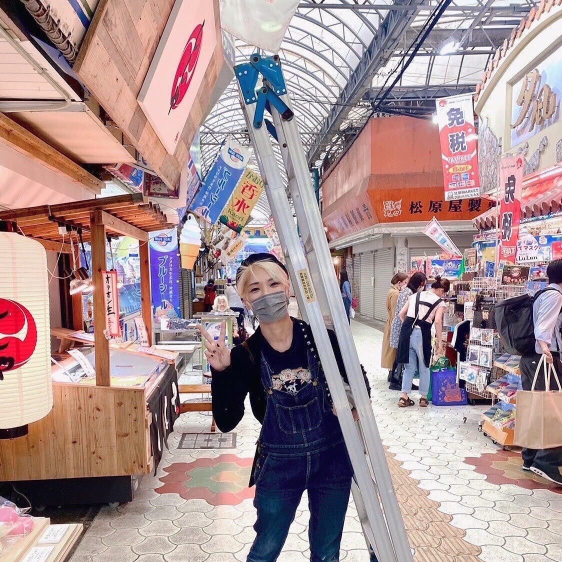 那覇市の商店街、水上店舗2階にある3Beのオフィス兼ワークスペース。