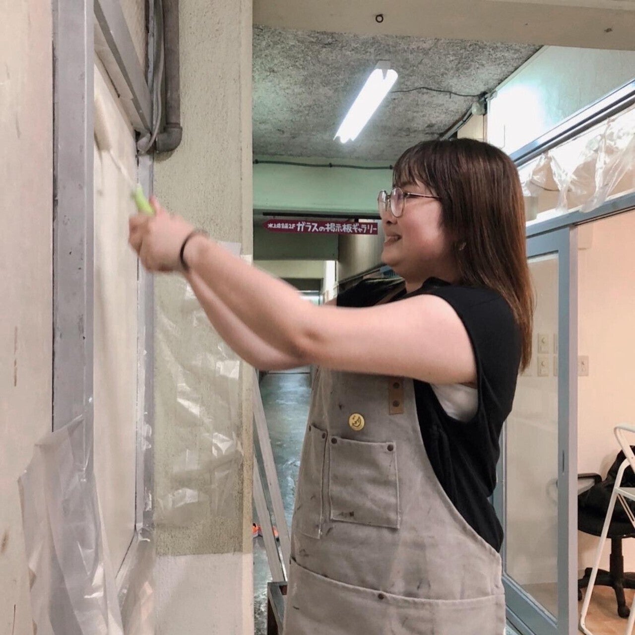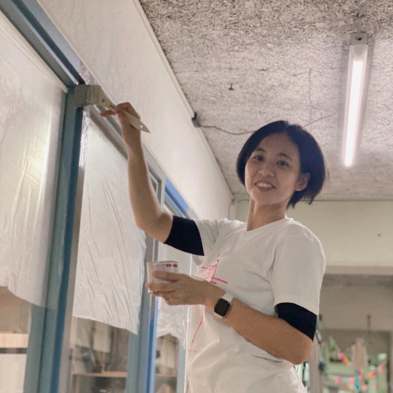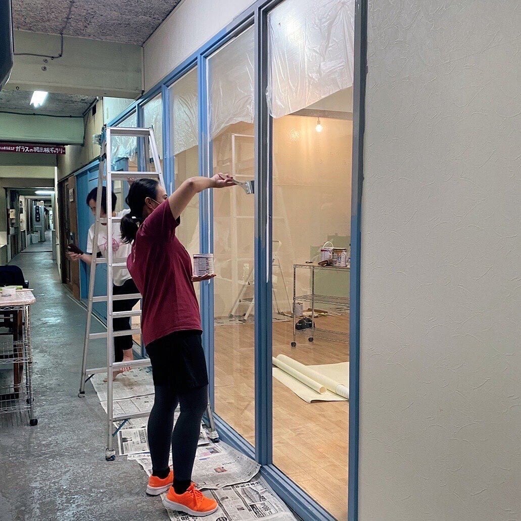 この日は室内の壁や入口の窓枠をペンキ塗り