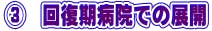 最初は、急性期病院入院です。薬中心の治療になります。最近の動向は、急性期病院の初めからリハビリ開始になります。