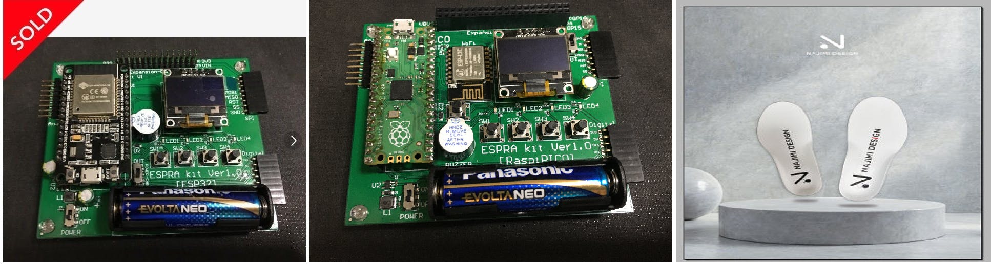 マイコン基板は、日新テクニカ + 島浜田商事 の開発商品です。インソールの取り扱いはNASYU株式会社 様より許諾を頂いてます。マイコン基板は 送付時、 ”ESP32 完成品” か ”RaspiPICO 完成品” のどちらかを選択致します。