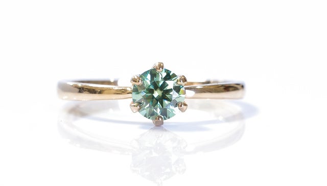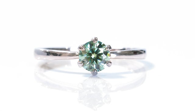 そんな美しいモアサナイトの中でも、ほとんど市場でもお目にかかることのないグリーンに輝くモアサナイト。