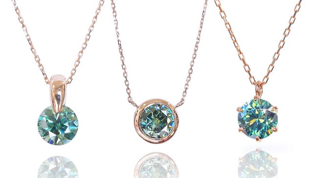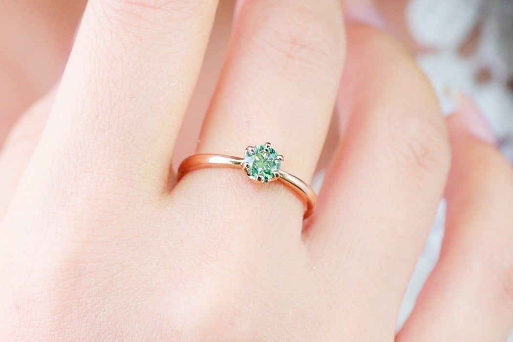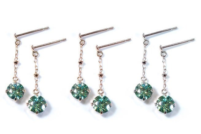 近年、ダイヤモンドを上回るその輝きから、世界中のジュエリーショップでクリアカラーのモアサナイトは取り扱われるようになりましたが、グリーンに輝くモアサナイトはジュエリーショップでも、ほぼ目にすることはないのではないでしょうか?
