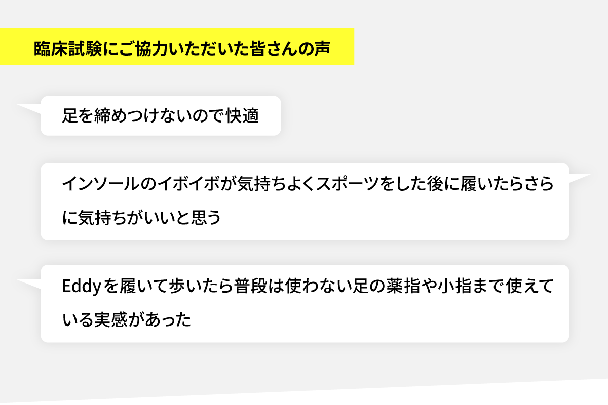Eddyは記録を生み出すために体を回復させるためのシューズ。そして多くの人々がいつまでも元気で健康な日々を送るためのシューズを提供します。