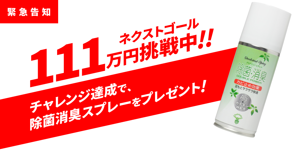 達成できた場合、これまでを含め、ご支援くださったみなさま全員に、除菌・消臭スプレーをプレゼントプレゼントさせていただきます。
