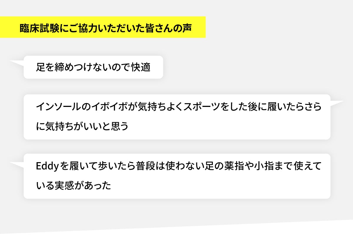 さまざまな年代の男⼥を対象に⾎流臨床試験を実施し、Eddyをたった180秒履いて歩いただけで血行が改善されることが実証されました。