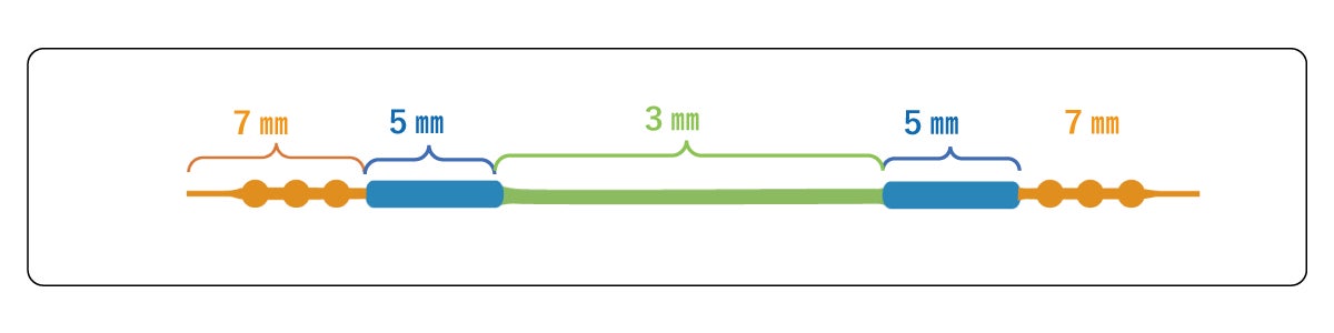 伸ばすとどの部分もハトメ穴を通る径約3㎜の太さになります。