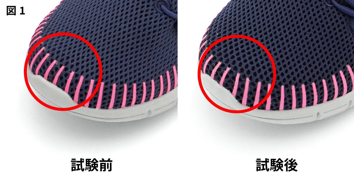 Eddyは通気性を確保するため、網目の大きなメッシュ素材を使用しておりますが、図1の部分において、長期間ご使用になられた場合、わずかではございますが接着剤のズレが発生する場合が考えられます。