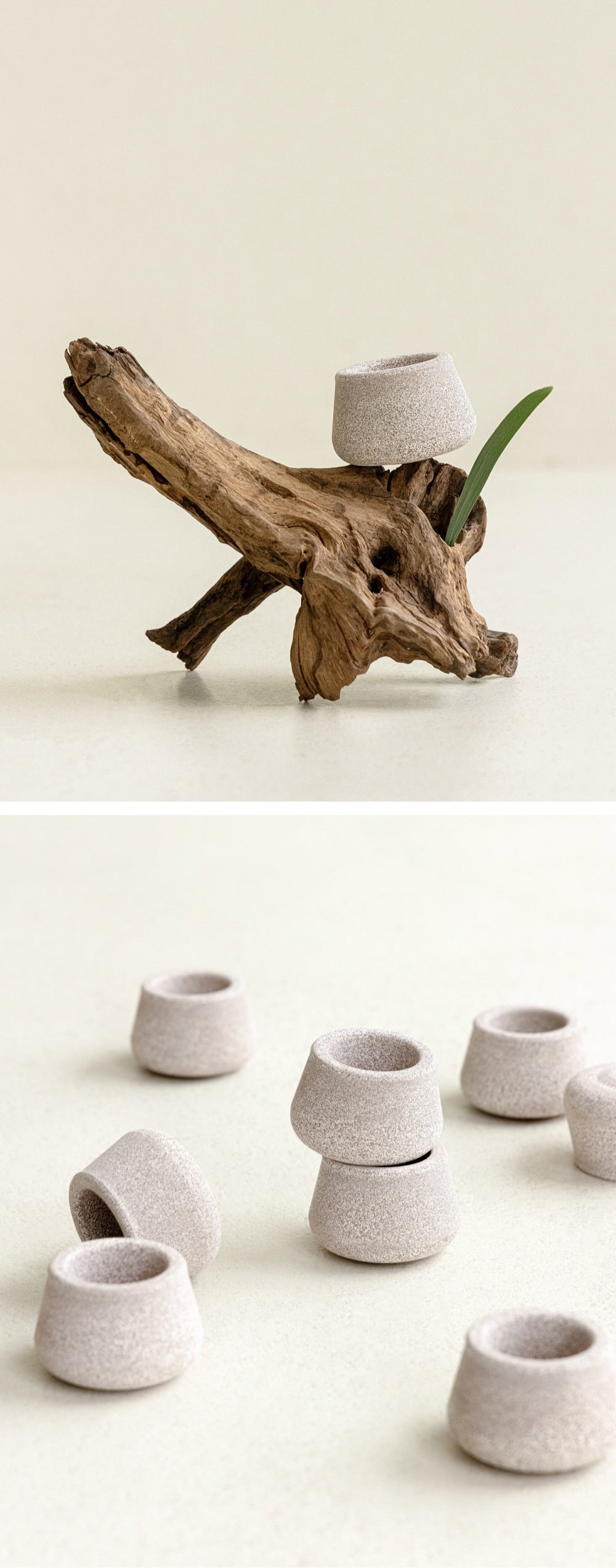 数多くの大きさと形を作ってサンプリングを重ねた後、2021年、最初のバージョンである小玉模様の珪藻土ポットを発売しました。earthballという名前に相応しく地球に似た形、自転軸を元にした傾きなど、デザインにも力を入れてデザイン特許も取得しました。