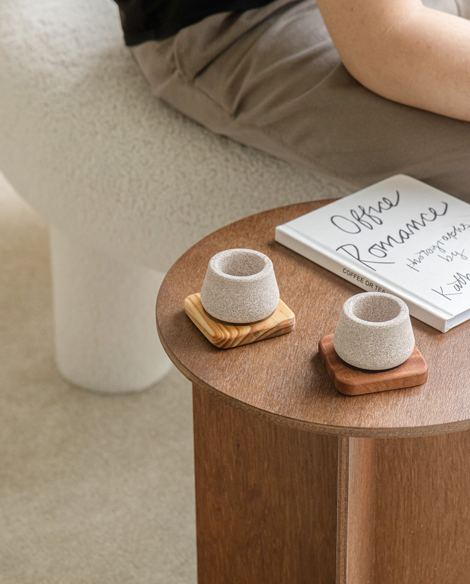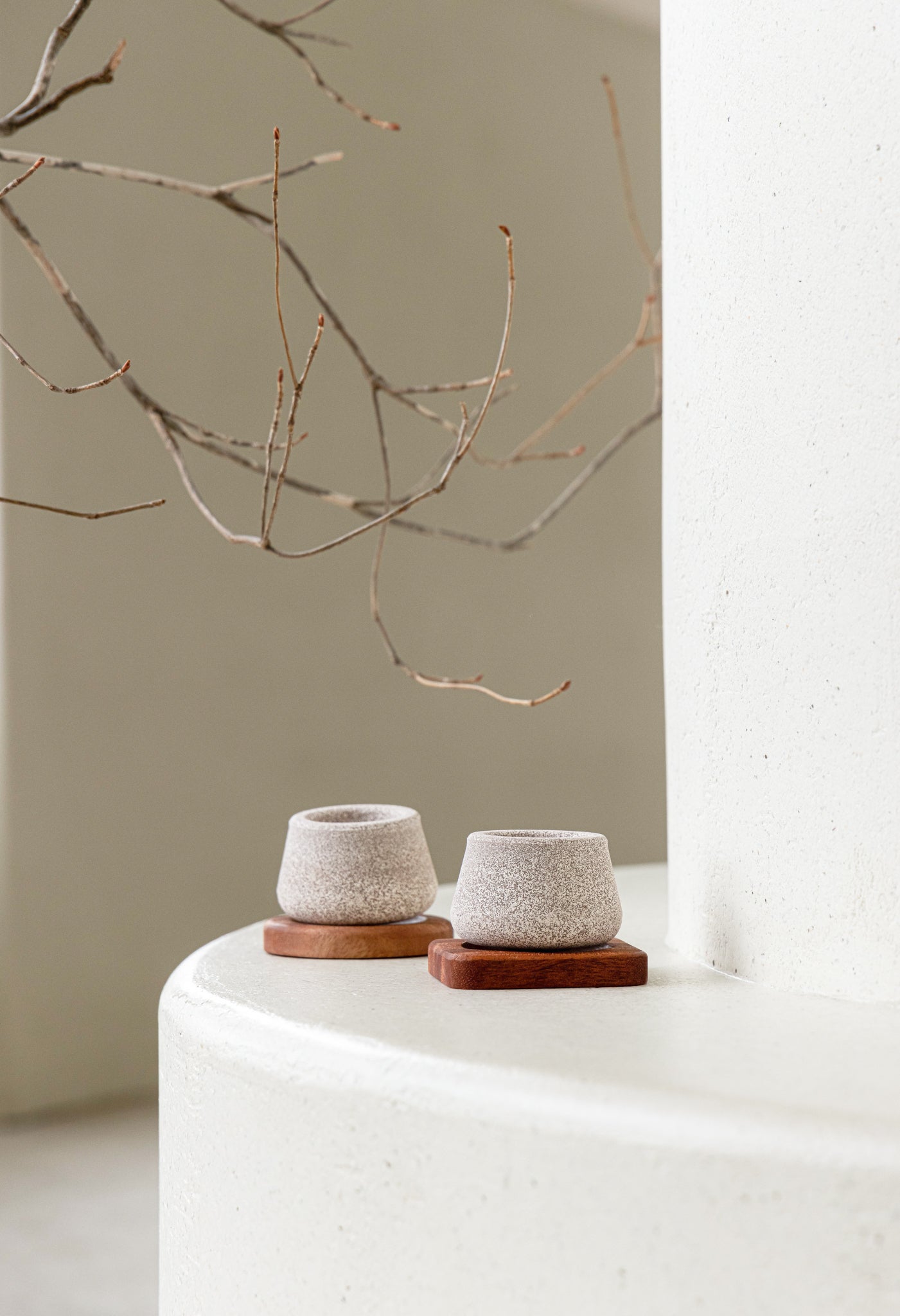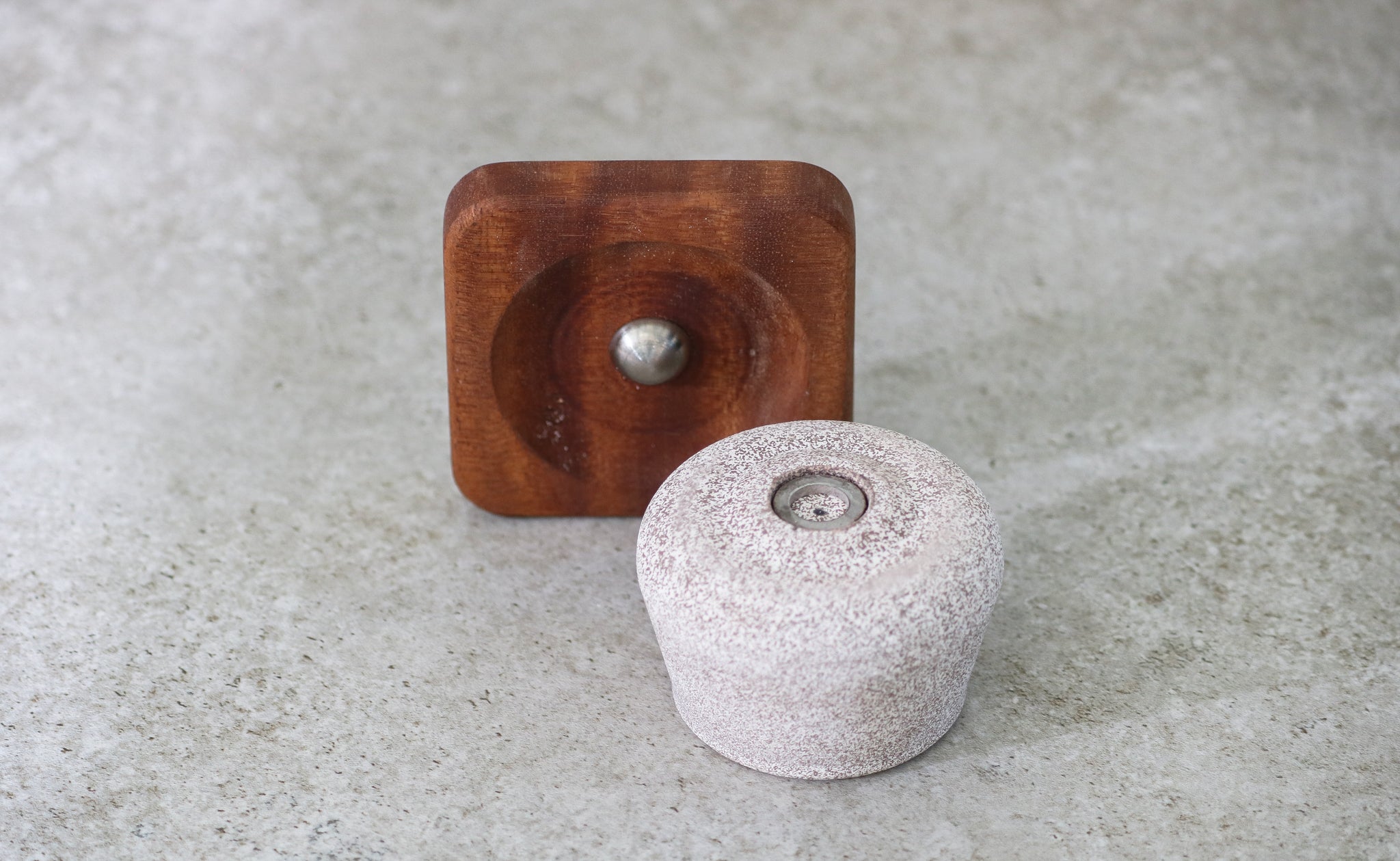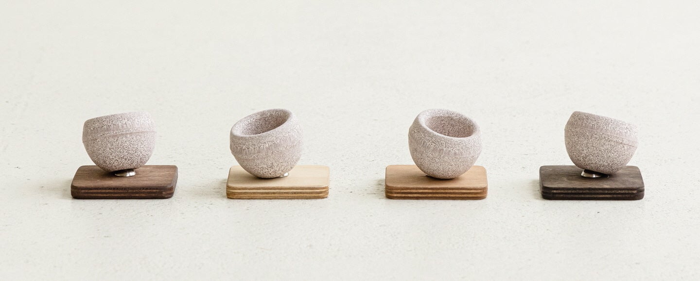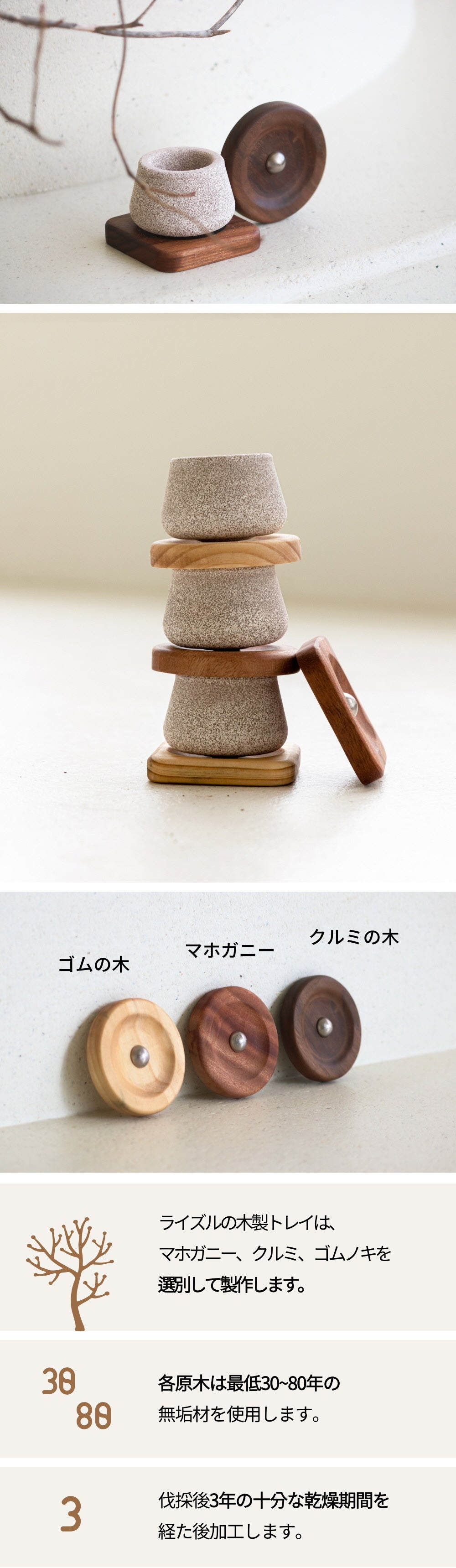 珪藻土ポットの下には磁石が付いており、木製トレイには鉄のピンが内蔵されています。