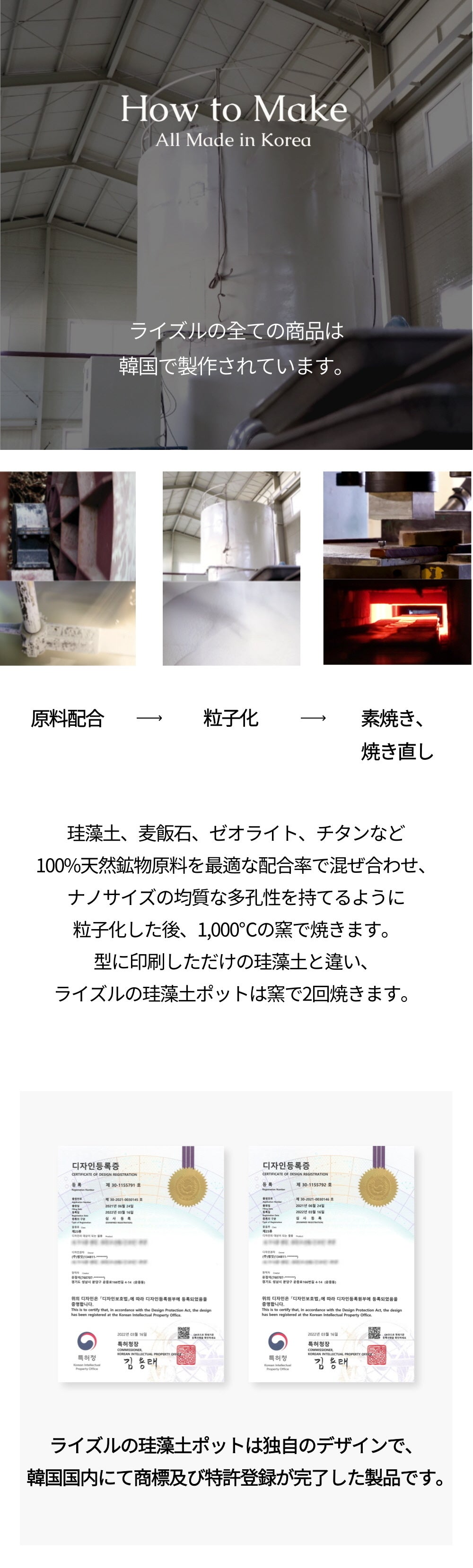 ライズルの「珪藻土ポットバージョン」をご紹介します。