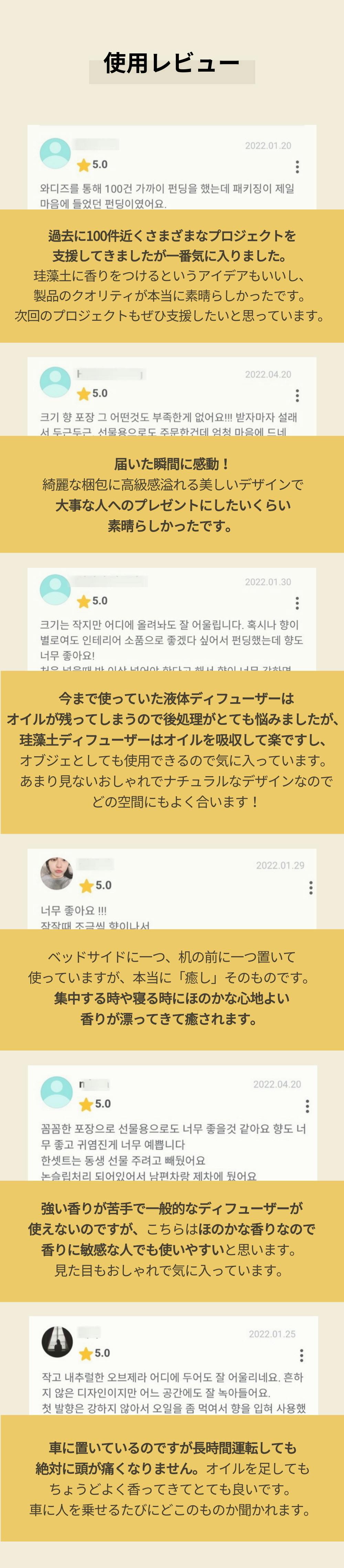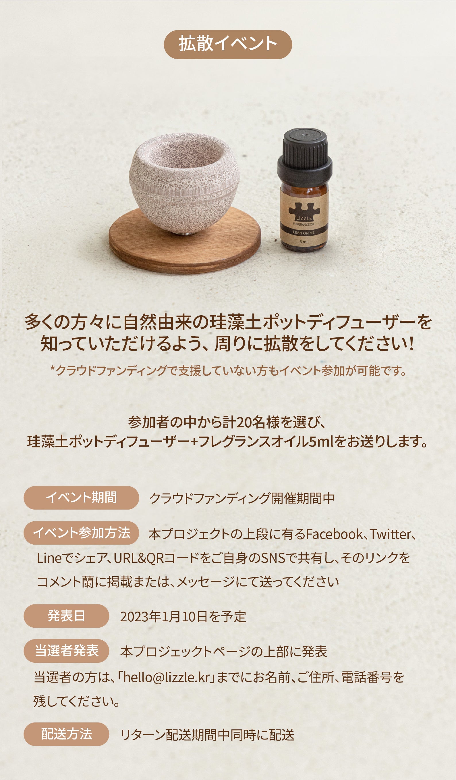 2023/01/05 14:56明けましておめでとうございます、支援者の皆さん!ライズルです。今年もどうぞよろしくお願いいたします。皆様のご声援のおかげでクラウドファンディングが無事終わりました。誠にありがとうございます:)新年が明けて弊社スタッフは熱心に配送を準備中でおります。 日本の支援者様向けの日本語取扱説明書も丁寧に作っておりますのでご安心くださいね^^! ほのかな香りで癒される支援者様の姿を想像するだけでワクワクします♡皆様のお手元に安全に届けられるように頑張ります!それでは詳細な日にちが出たらまた告知させていただきますね。最後までよろしくお願いいたします。ありがとうございます。 もっと見る