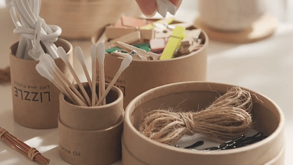 厚みもあり丈夫な紙パッケージは、物を入れるなどして再利用してください。