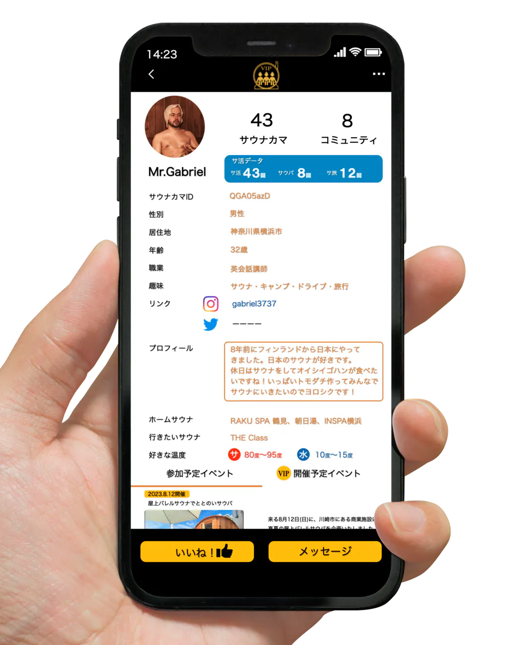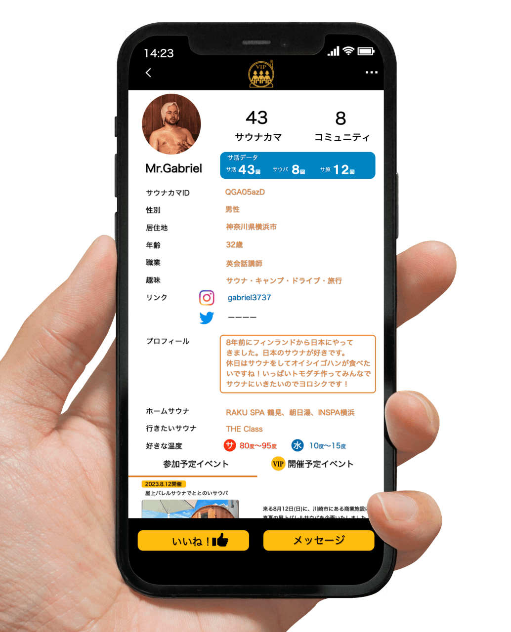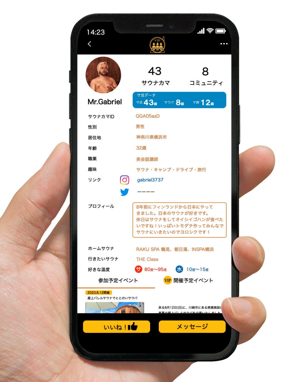 また、InstagramとTwitterのリンクも貼れますので、サウナカマ以外での日常をお互いに知り合うこともできます。