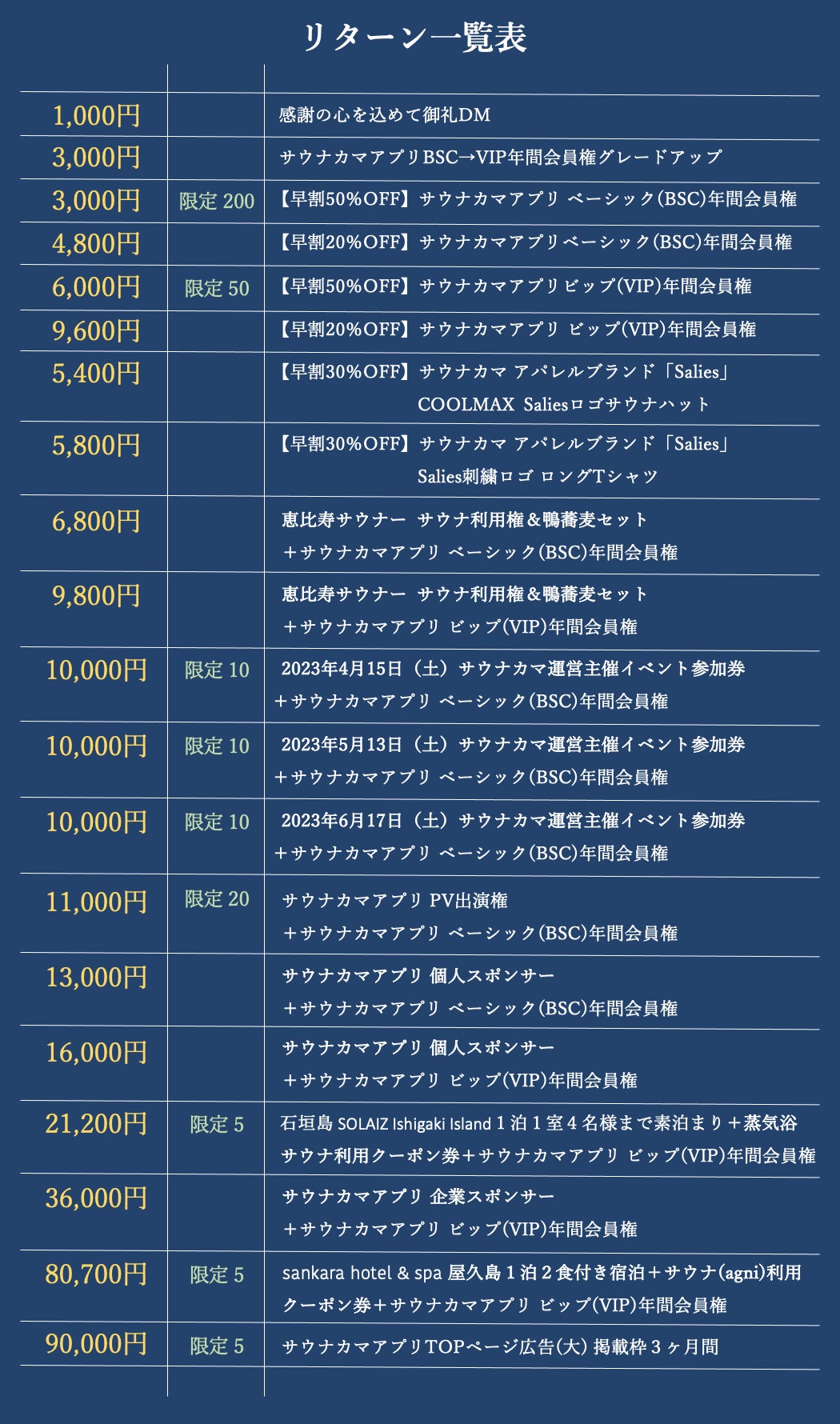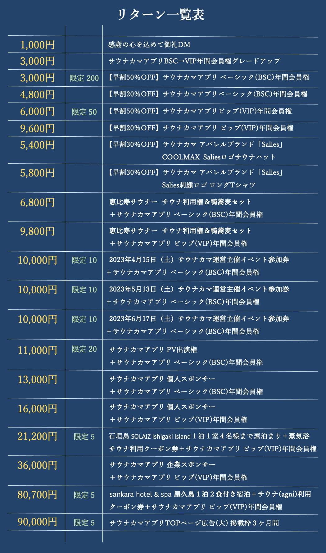 今回のクラウドファンディングで集まった資金は、CAMPFIRE手数料を除き、サウナカマアプリの開発費用の一部、商品仕入れ、販促、支援者の皆様へのリターン配送の費用として大切に使用させていただきます。