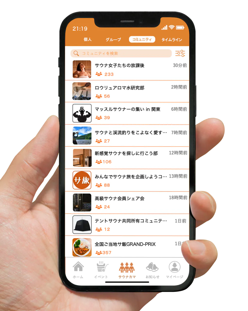 サウナ好きだけが集まるグループチャットや個別チャットで、サウナのマニアックな会話やオフ会の企画なども皆さんで存分に楽しんでください。