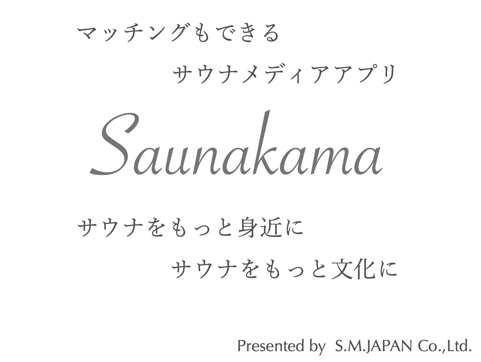 このたび発足するS.M.JAPANは、日本独自のサウナカルチャーをもっと活性化するために、そして「年齢を重ねても健康で豊かな生活を送れる働き世代を増やす」ことを企業理念として事業活動を進めて参ります。 また、サウナをきっかけとした人と人の出会いの場を提供し、サウナに特化したソーシャルメディアサービスを拡充することにより、より人生が豊かになるためのQOL(クオリティ・オブ・ライフ)向上とSDGsも目標とした地方創生に寄与したいと考えております。