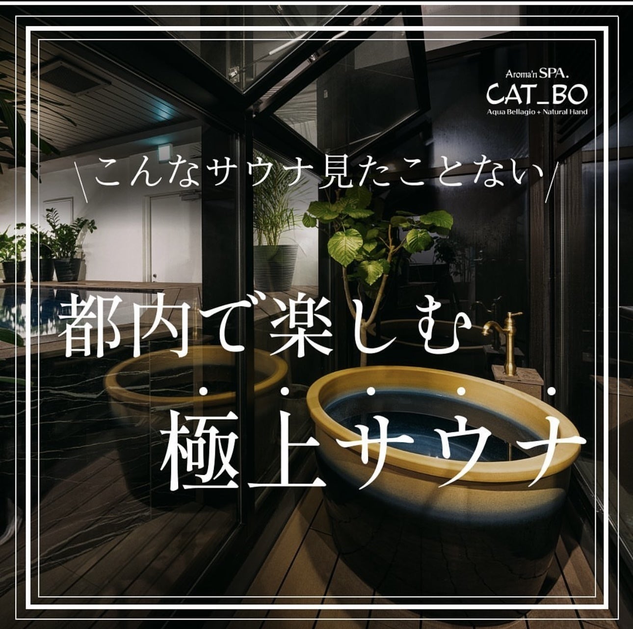皆さまこんにちは!本日はサウナカマ会員さまが超!お得にご利用できる施設に、サウカナマ提携先として「極上のサウナ付きスパ Aroma'n SPA CAT_BO」さまが決定しましたのでご紹介させていただきます。所在地は東京のど真ん中、千代田区一番町に本店を構える、完全貸切の巨大温水プール(全長 7m・幅2m50cm・深さ1m20cm、湯泉は富里温泉の名泉を利用)&男女でも入れるセルフロウリュの出来るサウナと、1フロア1部屋のプレミアムなペントハウスをサウナカマ会員だけのスペシャルプライスでご利用することが可能です。是非、サウカナマの皆さまでサウナ&ホームパーティーイベントを楽しんでいただけたら幸いです!施設情報はこちら《サウカナマVIP会員特典》●サウナ&温泉プール30分4,000円→60分以上利用で25%OFF(-2,000円)●プライベートルーム60分10,000円→120分以上利用で25%OFF(-5,000円)→180分以上利用で30%OFF (-9000円)※サウナカマアプリ正式リリース後に予約可能。サウナカマアプリでは、今後もこのようなスペシャルプライスで利用できる宿泊、サウナ、飲食の提携先をどんどん追加して参りますのでご期待ください!