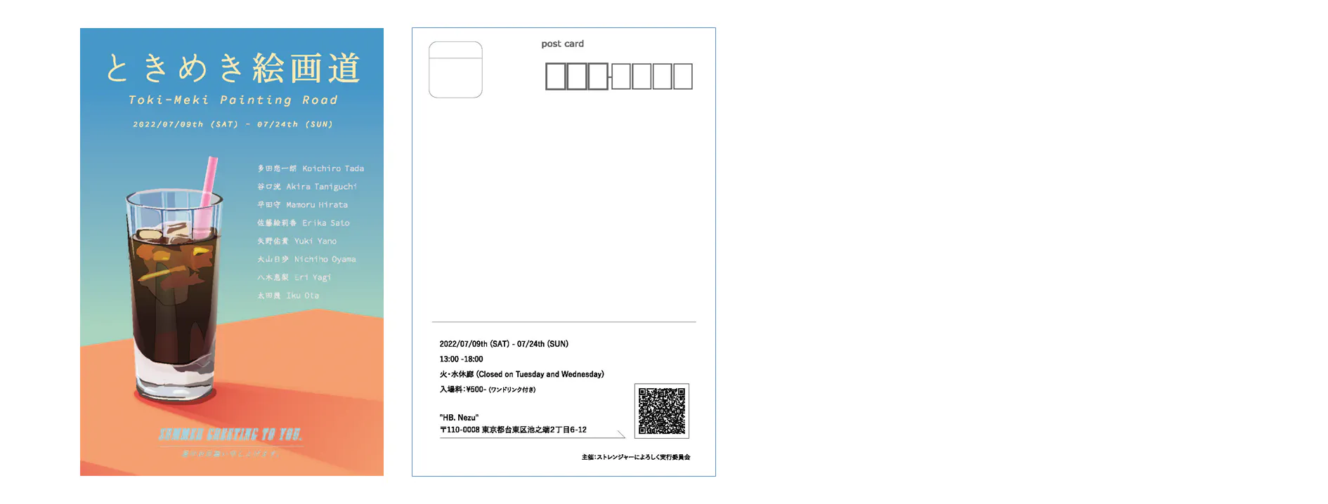 芸術祭という大きな活動だけでなく、比較的小さな展覧会も行ってきました。その1つが、2022年7月9日〜7月24日にHB.Nezuで開催した『ときめき絵画道』です。
