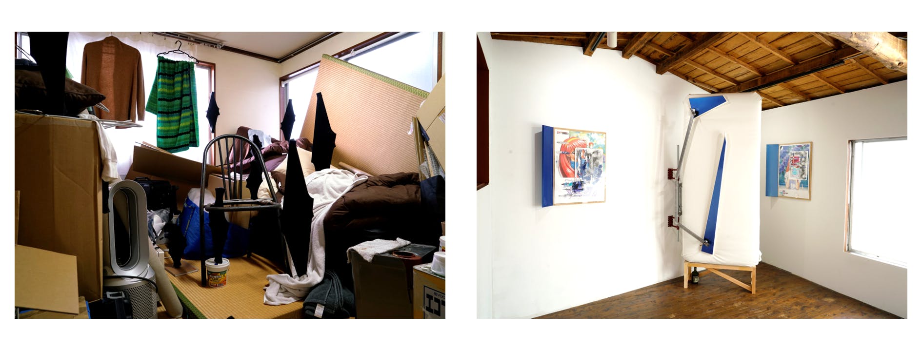本展覧会は、アートマーケットの興隆により表現の早熟が求められる現在のアート業界に対して、自分自身や素材と十分に向き合いながら作品制作・発表をすることが重要ではないかという考えから開催しました。8名のアーティストが参加し、部屋に別世界を映す窓として飾られるいわゆる絵画、部屋を彩る普通の家具、絵画と家具のどちらの要素も持っているものの三要素によって絵画空間の領域の再考と拡張を目指しました。