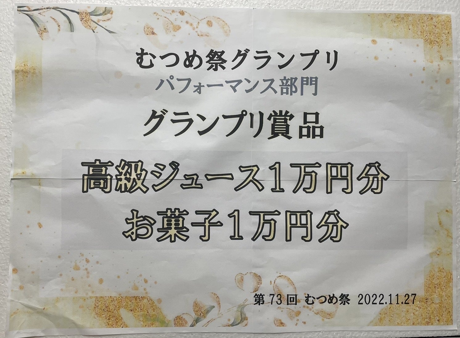 そして皆様のおかげで、むつめ祭パフォーマンス部門にて吹奏楽部がグランプリに輝きました!たくさんの応援ありがとうございます!