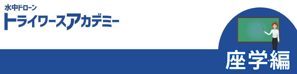 トライワースアカデミー座学編では実際に水中ドローンを運用する上で必要になる法律の知識や運用方法について学習していきます。
