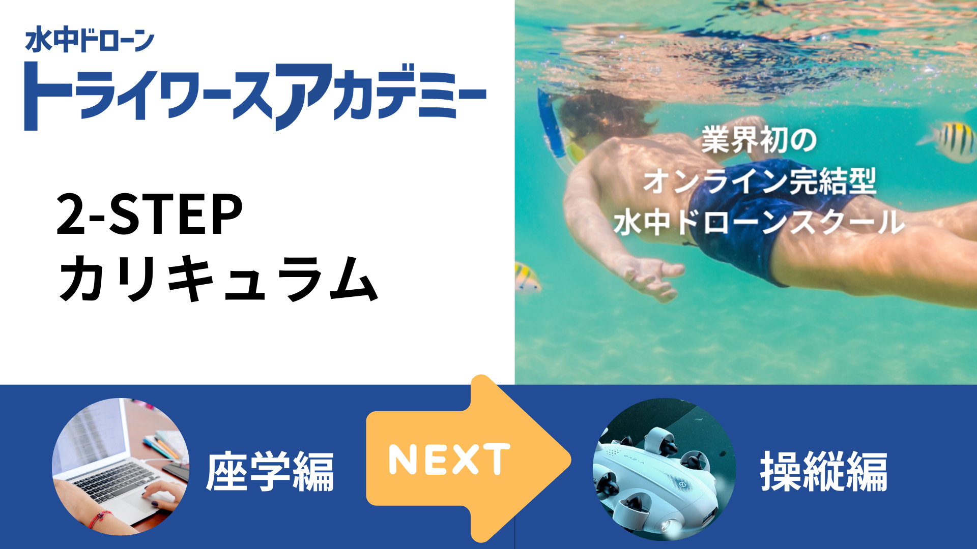 そんな想いから、2023年10月より完全オンライン完結型水中ドローンスクール"トライワースアカデミー"を開校いたします!