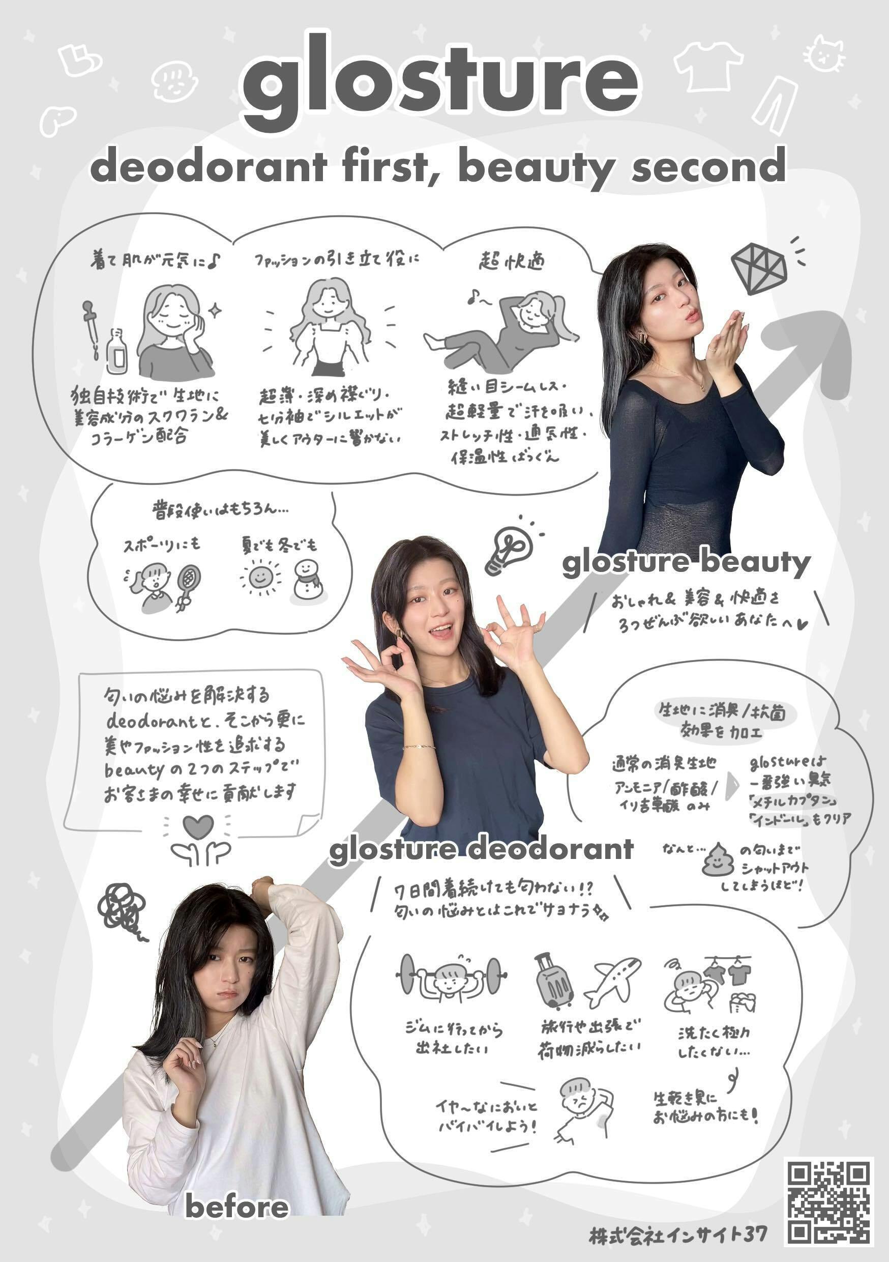 新しい機能性素材を使ったGlostureインナーウェアをお人でも多くの方に体験していただけるようスタッフ一同精一杯頑張らせていただきますので、何卒応援のほどよろしくお願いいたします。