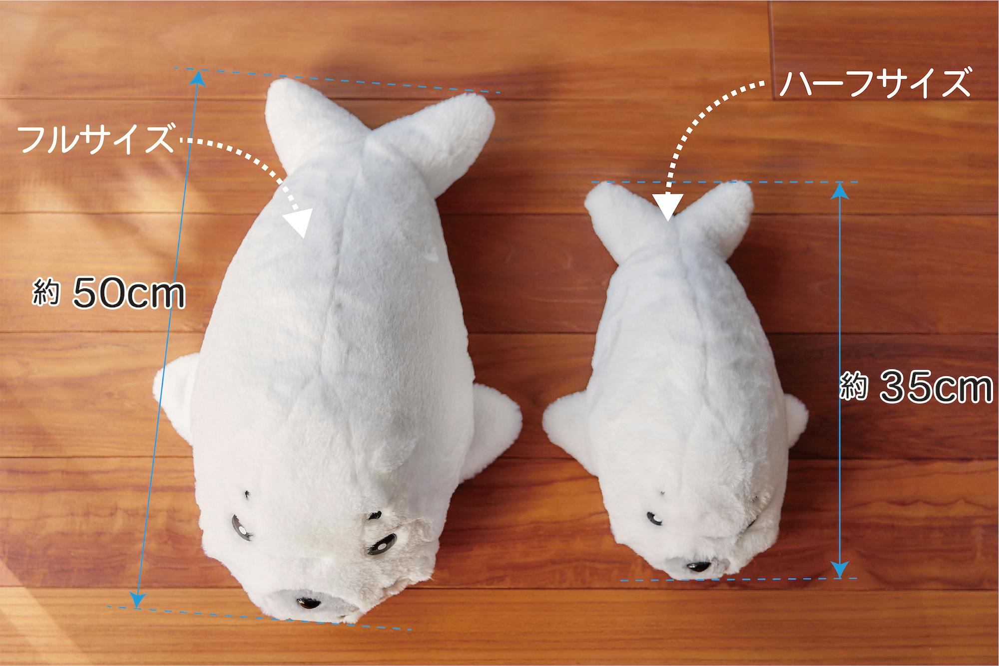 サイズは森下先生認定の実物サイズ『ゴマちゃんフルサイズ(約50cm)』と、お散歩に連れて行くのにちょうどいいおでかけサイズの『ゴマちゃんハーフサイズ(約35cm)』の2種類。生地は心地よい肌触りの毛足の長いフェイクファーを採用しました。
