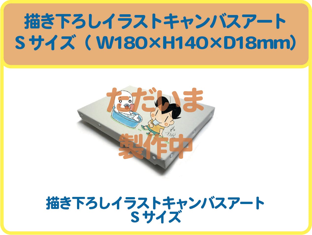 描き下ろしイラストを高精細プリントしたF0号サイズ(W180xH140xD18mm)のキャンバスアート。