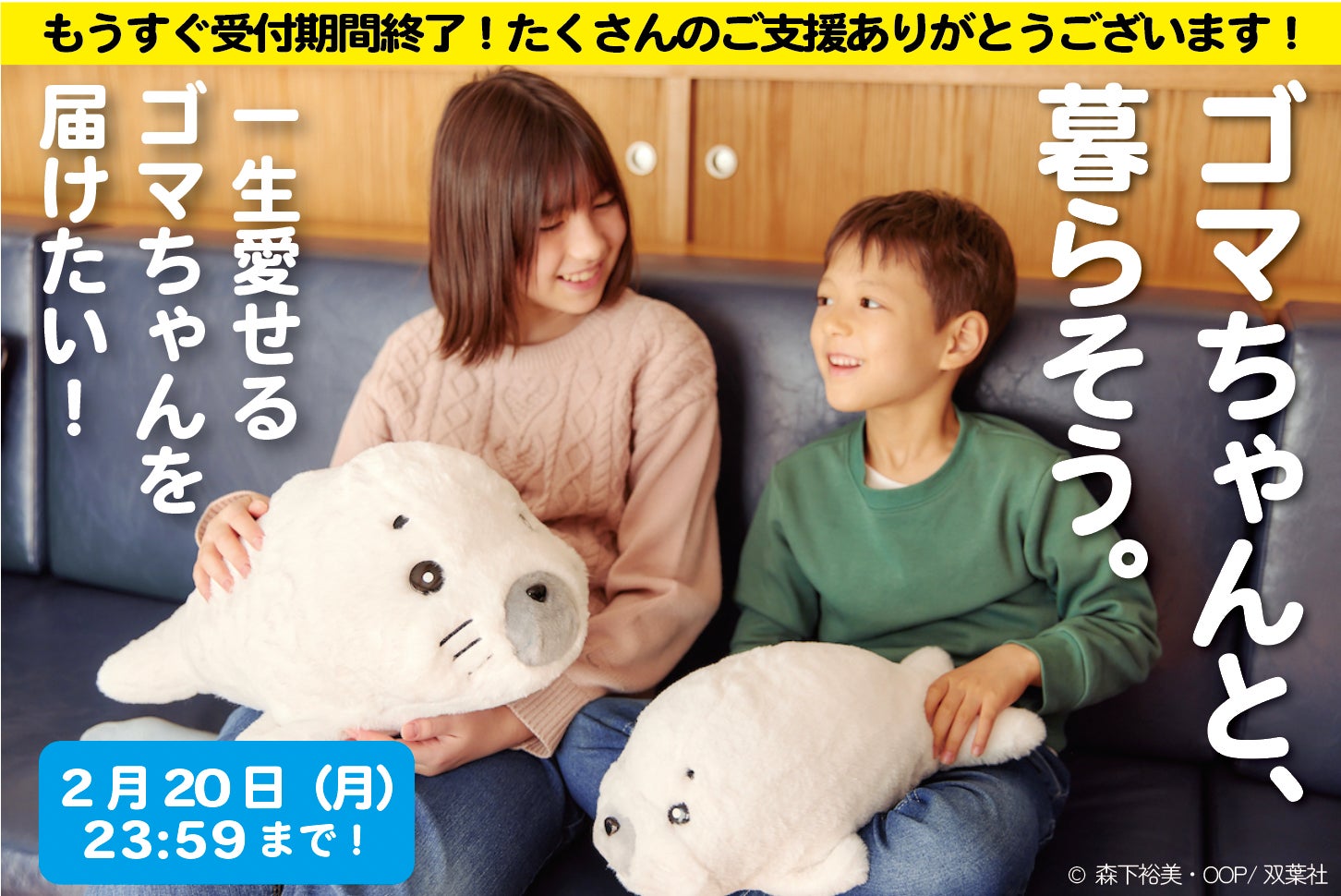 全長約50cmの実物大。ゴマちゃんフルサイズとクラファン限定描き下ろしイラストカード付きのプラン。