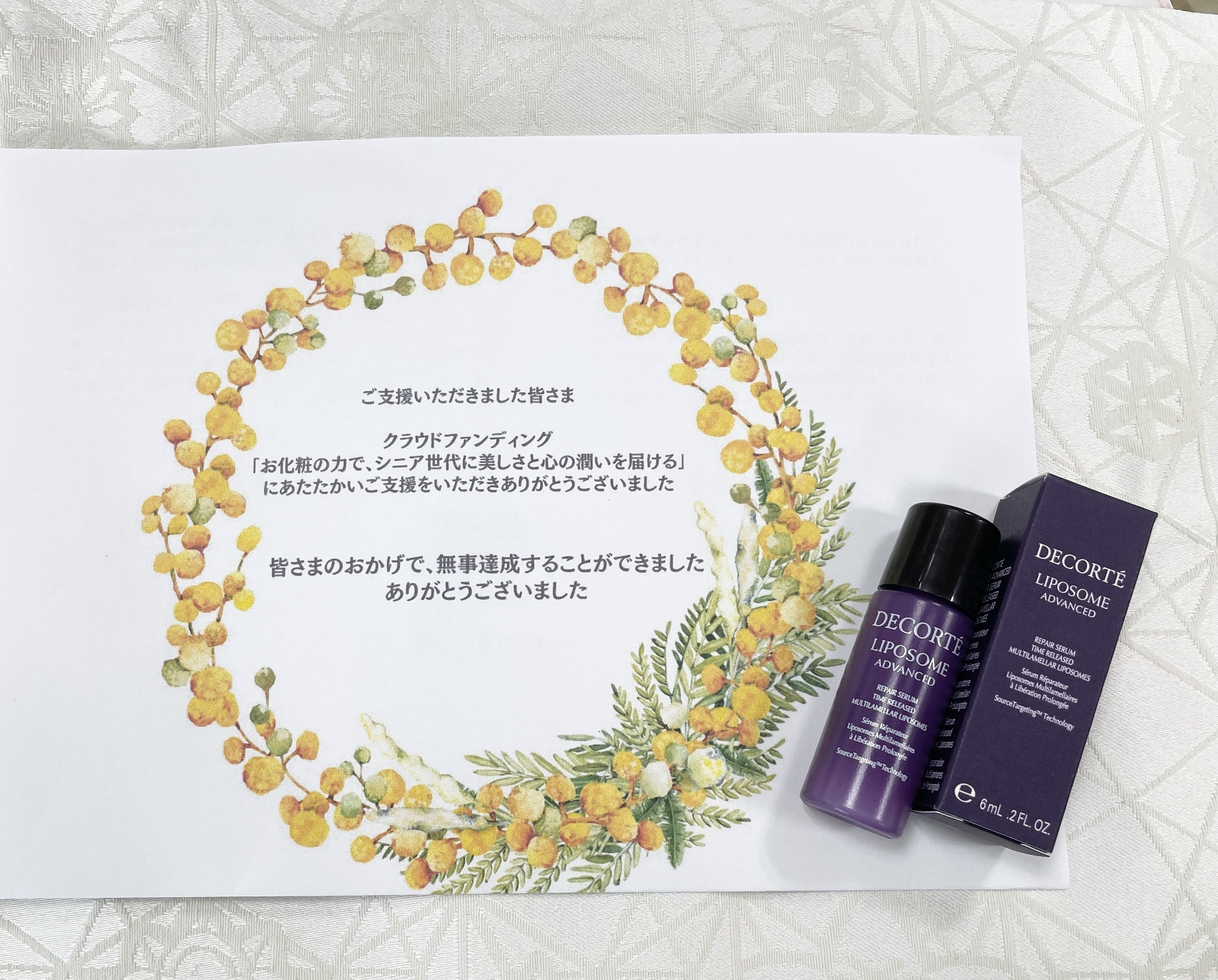 ご支援者さまのリターンについて【手紙サンプル化粧品付き】