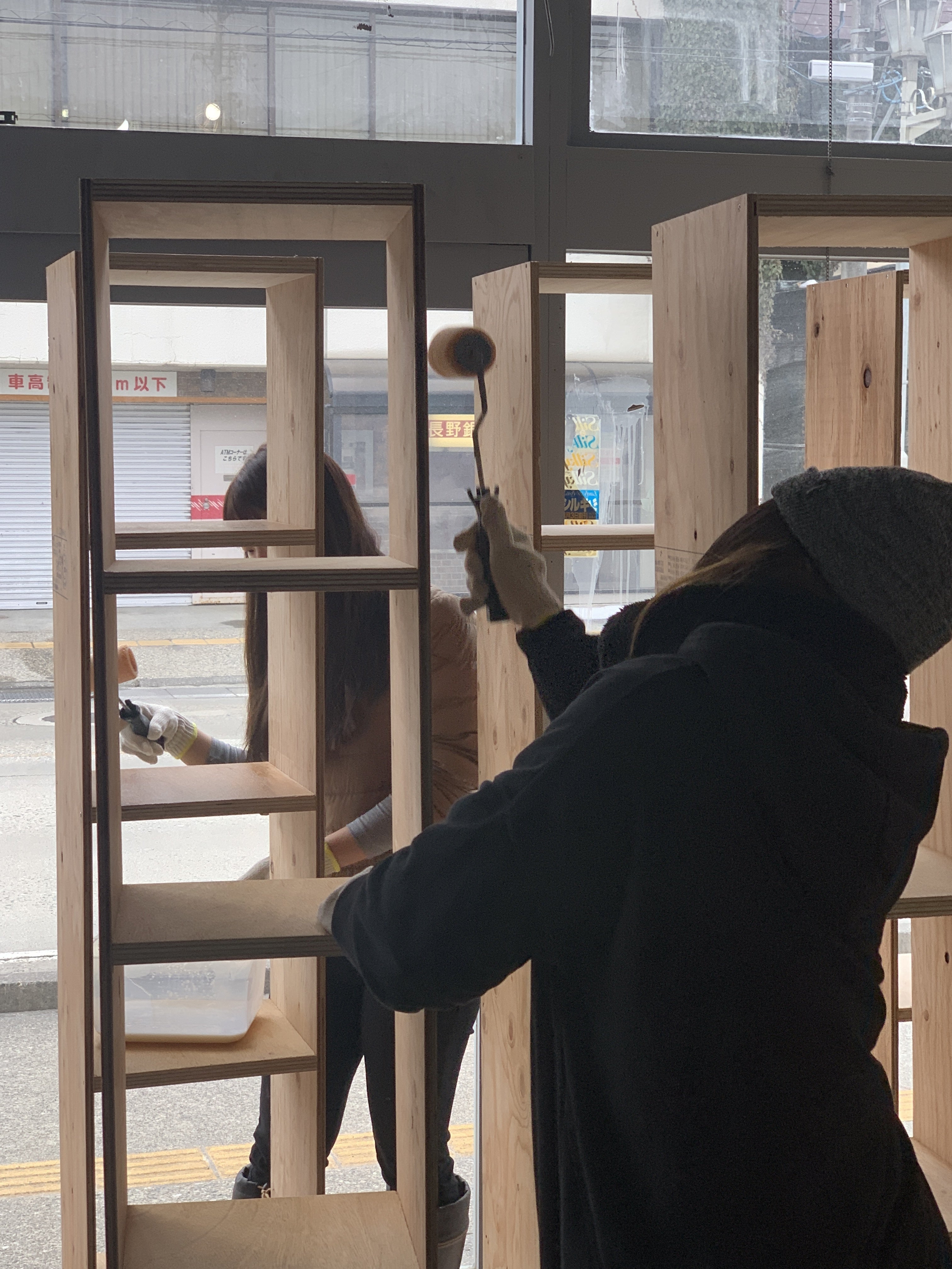 皆様、ご支援いただきありがとうございます。Re:Publicの田中です。先週末の2月18日、19日に有志で、本棚オーナーの皆様にお使いただく本棚の、一部作成とニス塗り活動を行いました。