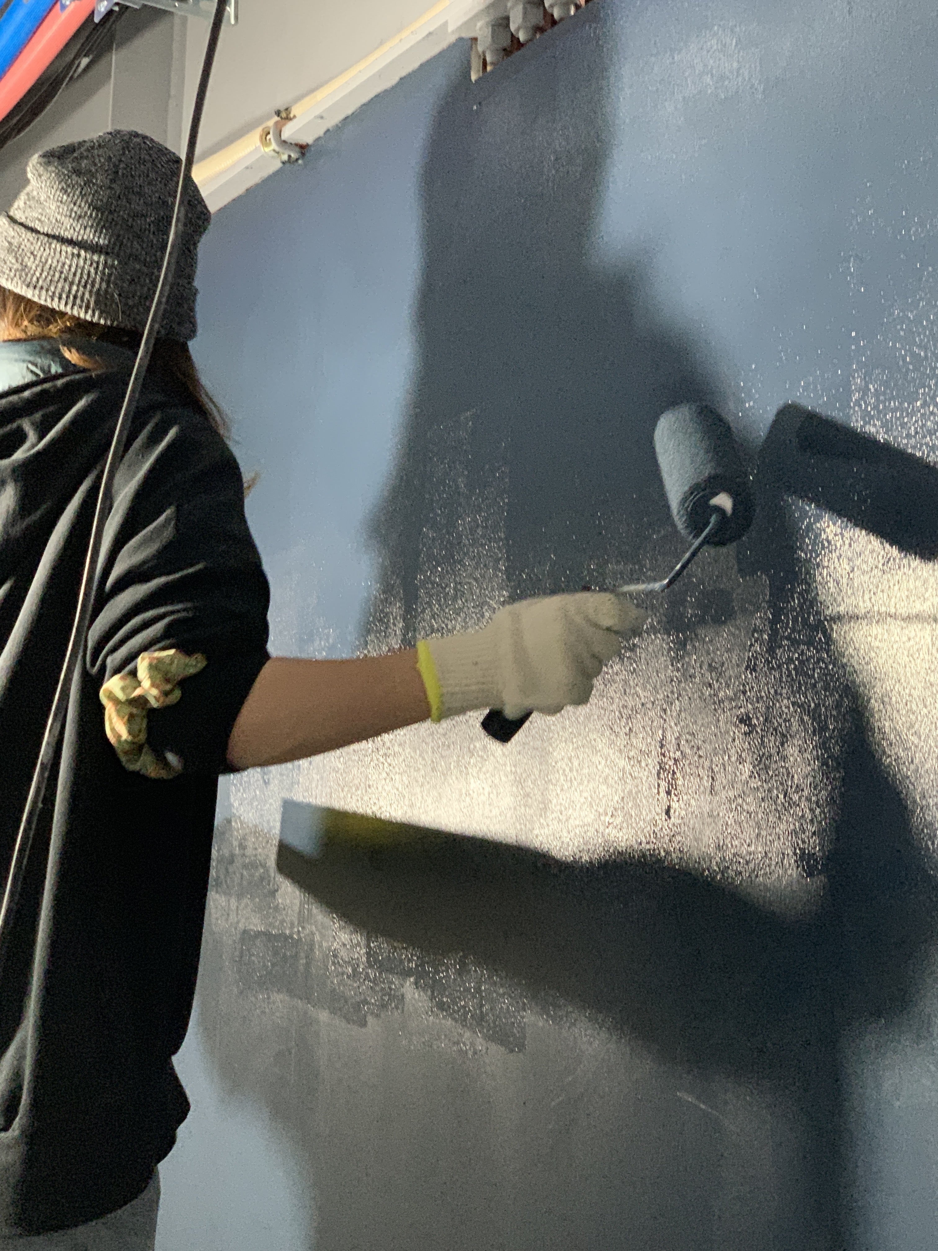 Re:Publicの田中です。2/18,2/19のもうひとつの作業はキッチン裏(階段フロア)の壁を黒板にする事でした。私自身は大きな黒板を作るのは三度目ですが毎回ワクワクします。塗料はタカラペイントの黒板塗料(水性)を使います。https://takaratoryo.shop/?mode=cate&cbid=2352104&csid=0色は13色ほどある中から今回はDark Blueberry/ダークブルーベリーをチョイス。施工方法ですが、意外と簡単で、石膏ボードを丹念にパテ埋めして、タカラペイントの黒板塗料を二度塗り、すると壁面が黒板になります。作業は白馬村内外からかけつけてくれた有志で塗装。おもてなし感のある落ち着いた色合いの黒板ができました。BEFOREAFTER