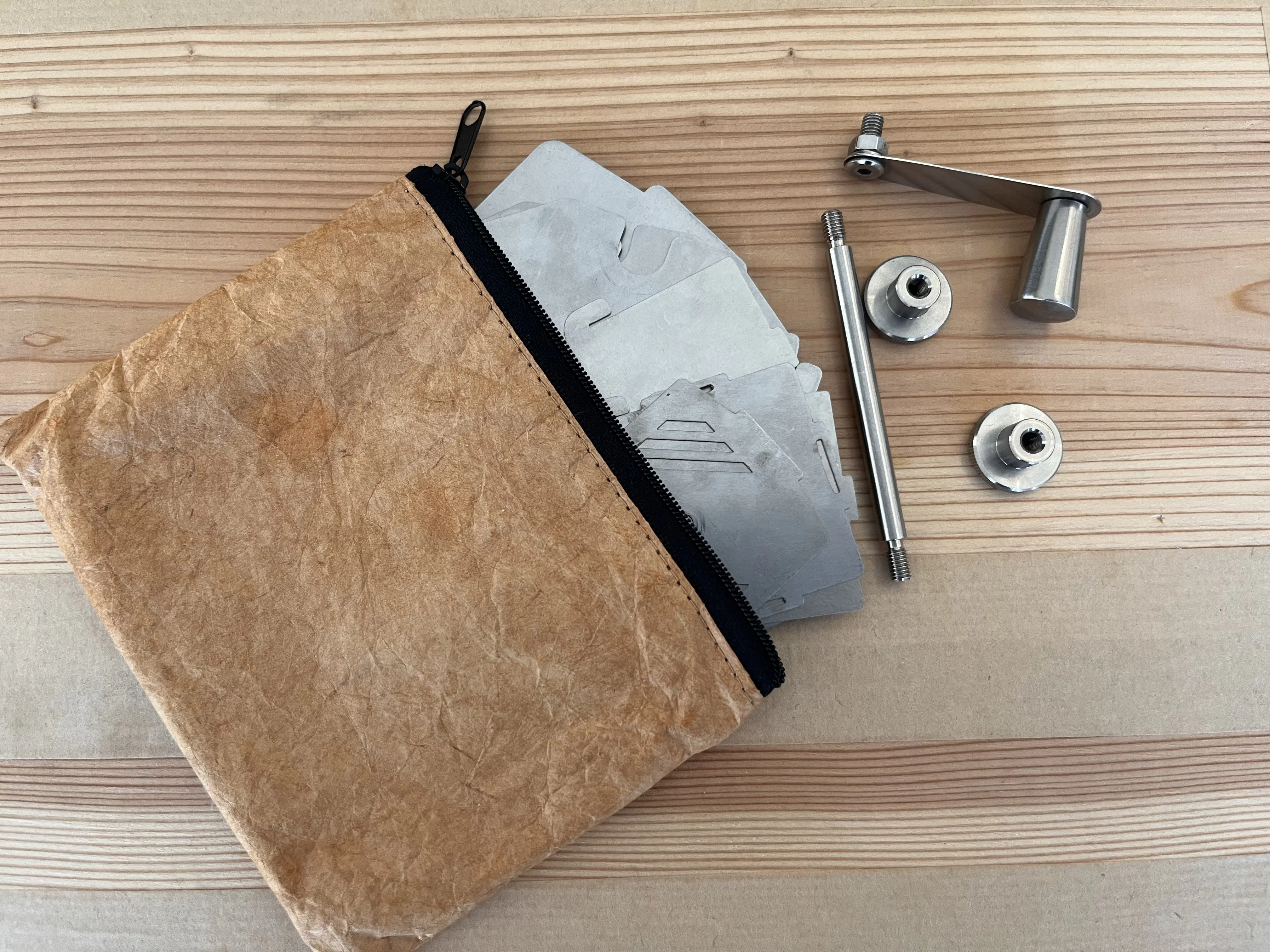 内容物:パーツ×15ヶ、タイベックケース、滑り止めシリコンシート