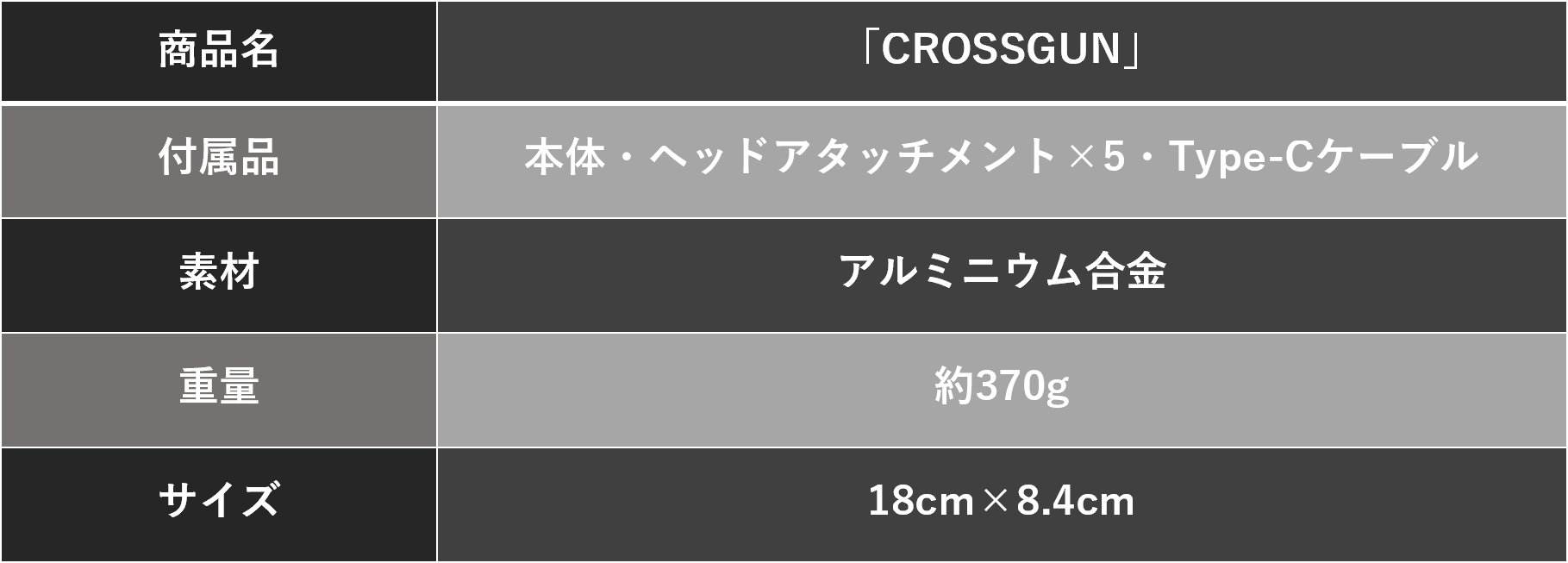 価値を高め、生活の質を向上させるための開発を行っています。今回のCROSSGUNは女性でも簡単に扱えて自信をもっておすすめする商品です。