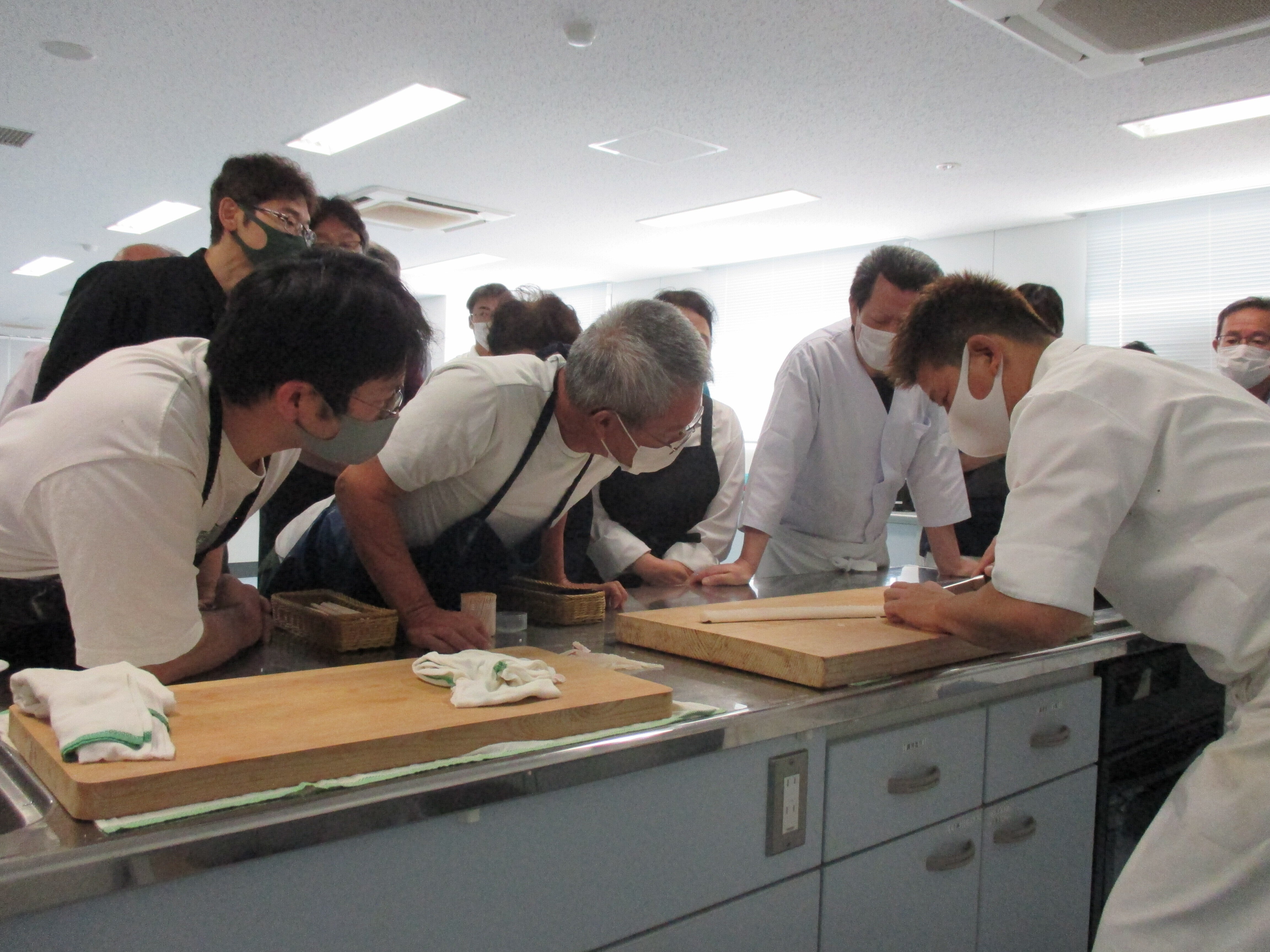 せっかく多く獲れる鱧を何とかして、地元の特産品にできないかというのは、これまで八幡浜の長年の課題でもありました。加えて、2020年に世界中を襲ったコロナ禍で、八幡浜の料飲店は厳しい経営環境におかれました。ちょうどその時期に、八幡浜料飲組合長で地元でホテルを経営する伊藤篤司さんが、松山市で鱧を骨切りせずに食べるお店があることを知り、新たな料理として八幡浜の名物になるのではないかと考えました。伊藤さんはその技法を広げるため、八幡浜の料飲店や水産業者に声をかけ技術講習会を開催し、「えひめ秘伝技あり鱧」の技法の普及に乗り出しました。もちろん技術を担保するために、認定試験を実施して、品質にこだわりました。